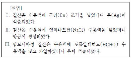 다음은 질산은(AgNO3) 수용액과 관련된 세 가지 실험이다.