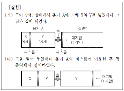이에 대한 옳은 설명만을 <보기>에서 있는 대로 고른 것은? (단, 연결관의 부피와 피스톤의 마찰은 무시한다.) [3점]