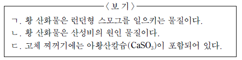 그림은 화석 연료의 연소 시 생성되는 황 산화물과 그 처리 과정을 나타낸 것이다.