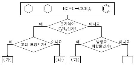 그림은 네 가지 탄화수소를 몇 가지 기준에 따라 분류한 것이다.