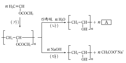 다음은 비닐아세테이트로부터 폴리비닐알코올(PVA)을 합성하는 2 가지 경로이다.