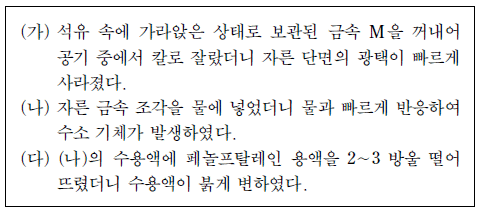 다음은 어떤 금속 M의 성질을 알아보기 위한 실험이다.