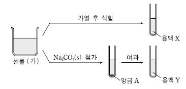 그림은 센물 (가)의 성질에 대한 실험을 나타낸 것이다.