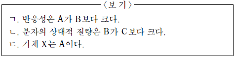 이에 대한 설명으로 옳은 것만을 <보기>에서 있는 대로 고른 것은? (단, 밀도는 0˘C, 1 기압에서의 값이다.) [3점]
