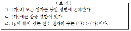 이에 대한 설명으로 옳은 것만을 <보기>에서 있는 대로 고른 것은? (단, H, C의 원자량은 각각 1, 12이다.) [3점]