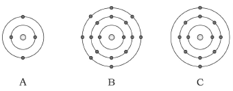 그림은 원자 A~C의 전자 배치 모형이다.