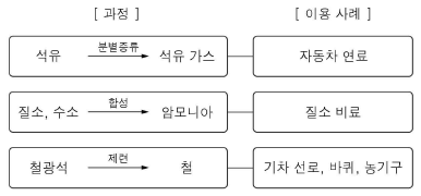 그림은 인류 문명 발전에 기여한 물질을 얻는 과정과 그 물질을 이용하는 사례를 나타낸 것이다.