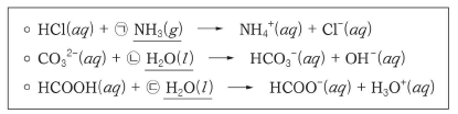 ㉠ ~ ㉢ 중 브뢴스테드-로우리 염기인 것만을 있는 대로 고른 것은?