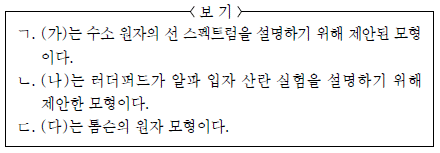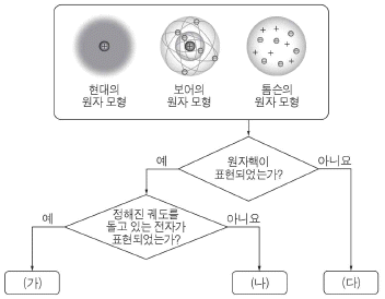 그림은 3가지 원자 모형을 주어진 기준에 따라 분류한 것이다.