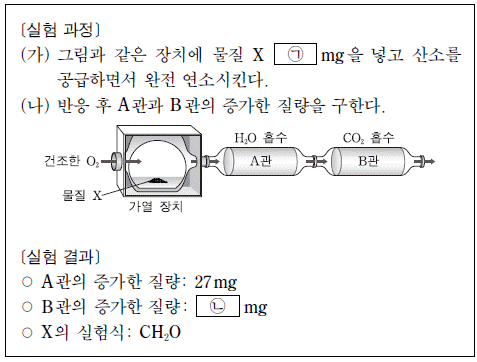 다음은 C, H, O로 구성된 물질 X의 실험식을 구하는 실험이다.