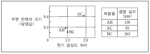 이에 대한 설명으로 옳은 것을 <보기>에서 모두 고른 것은? (단, A~C는 임의의 원소 기호이며 쌍극자 모멘트의 크기는 부분 전하의 크기와 두 전하 사이의 거리 (결합 길이)의 곱과 같다.)