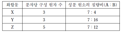 표는 원소 A, B로 이루어진 화합물 X~Z에 대한 자료이다.
