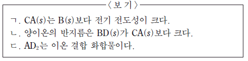 이에 대한 설명으로 옳은 것을 <보기>에서 모두 고른 것은? (단, A~D는 임의의 원소 기호이다.) [3점]