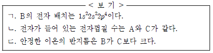 이에 대한 옳은 설명만을 <보기>에서 있는 대로 고른 것은? (단, A ~ C는 임의의 원소 기호이다.) [3점]