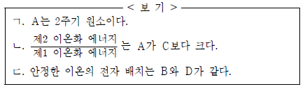 이에 대한 옳은 설명만을 <보기>에서 있는 대로 고른 것은? (단, A ~ D는 임의의 원소 기호이다.) [3점]