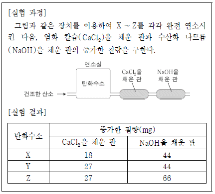 다음은 탄화수소 X ~ Z의 실험식을 구하는 실험이다.