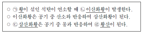 다음은 산성비가 만들어지는 과정의 일부이다.