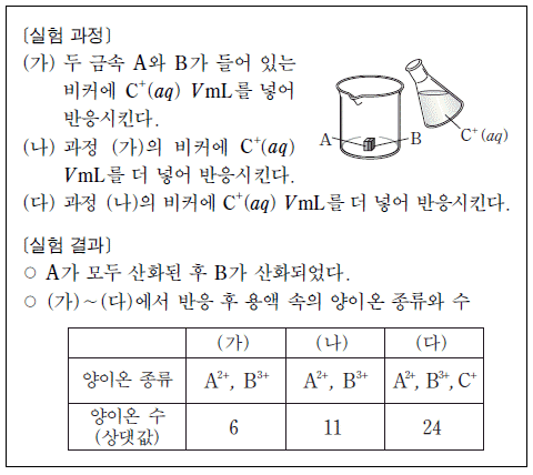 )는? (단, 음이온은 반응하지 않는다.) [3점]