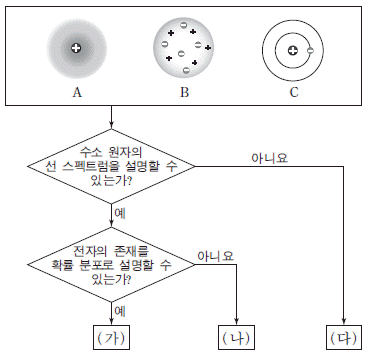 (가)~(다)에 해당하는 원자 모형으로 옳은 것은? (순서대로 가, 나, 다)