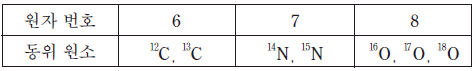 표는 C, N, O의 동위 원소에 대한 자료이다.