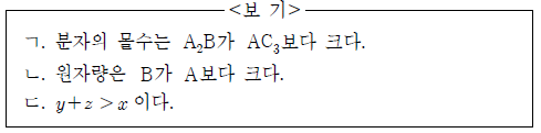 이에 대한 설명으로 옳은 것만을 <보기>에서 있는 대로 고른 것은? (단, A~C는 임의의 원소 기호이다.) [3점]