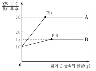 그림은 일정량의 금속 C 이온 수용액이 들어 있는 두 용기에 금속 A, B 분말을 각각 넣었을 때, 넣어 준 금속의 질량에 따른 용액의