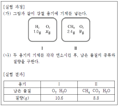 다음은 수소(H2)와 메테인(CH4)의 연소 실험이다.