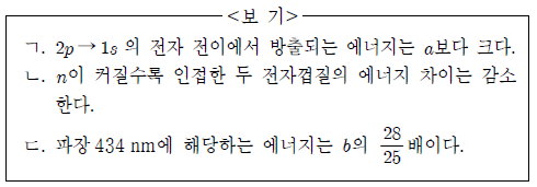 이에 대한 설명으로 옳은 것만을 <보기>에서 있는 대로 고른 것은? (단, 수소 원자의 에너지 준위
