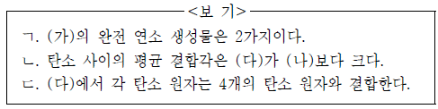 이에 대한 설명으로 옳은 것만을 <보기>에서 있는 대로 고른 것은? (단, (가)는 포화 탄화수소이다.) [3점]