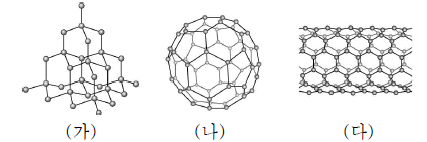 그림 (가)~(다)는 탄소 동소체의 구조를 모형으로 나타낸 것이다.