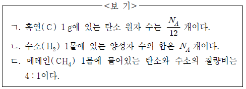 이에 대한 설명으로 옳은 것만을 <보기>에서 있는 대로 고른 것은? (단, H, C의 원자량은 각각 1, 12이다.)