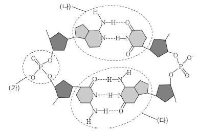 그림은 DNA 구조의 일부를 모형으로 나타낸 것이다.