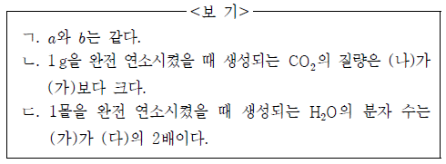 이에 대한 설명으로 옳은 것만을 <보기>에서 있는 대로 고른 것은? (단, H, C, O의 원자량은 각각 1, 12, 16이다.) [3점]