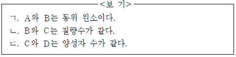 이에 대한 설명으로 옳은 것만을 <보기>에서 있는 대로 고른 것은? (단, A~D는 임의의 원소 기호이다.) [3점]