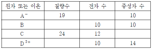 표는 원자 A~D의 바닥 상태 전자 배치에서 전자가 들어 있는 오비탈 수와 홀전자 수를 나타낸 것이다.