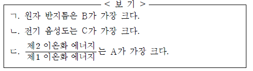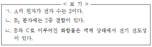A ~ C에 대한 옳은 설명만을 <보기>에서 있는 대로 고른 것은? (단, A ~ C는 임의의 원소 기호이다.) [3점]