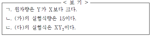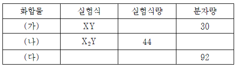 표는 X와 Y로 이루어진 3가지 화합물 (가)~(다)에 대한 자료의 일부이다.