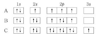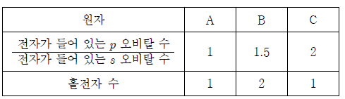 표는 2, 3주기 원소의 바닥 상태 원자 A ~ C의 전자 배치에 대한 자료이다.