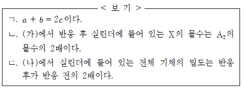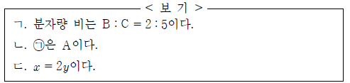 이에 대한 옳은 설명만을 <보기>에서 있는 대로 고른 것은? (단, A와 B는 임의의 원소 기호이고, 온도와 압력은 일정하다.) [3점]