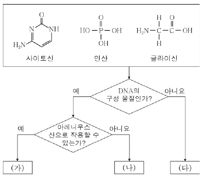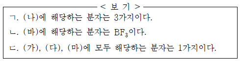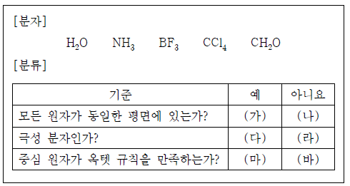 다음은 5가지 분자를 주어진 기준에 따라 분류한 것이다.