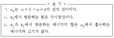 ai와 bj에 대한 옳은 설명만을 <보기>에서 있는 대로 고른 것은? (단, 수소 원자의 에너지 준위