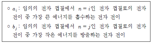 다음은 수소 원자의 전자 전이 ai와 bj를 정의한 것이다.