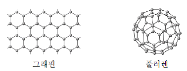 그림은 그래핀과 풀러렌을 모형으로 나타낸 것이다.