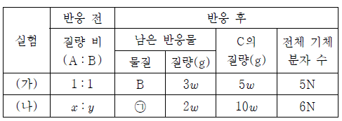 표는 용기에 A(g)와 B(g)를 넣고 반응을 완결시켰을 때 반응 전과 후 용기에 들어 있는 기체에 대한 자료이다.