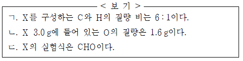 이에 대한 옳은 설명만을 <보기>에서 있는 대로 고른 것은? (단, H, C, O의 원자량은 각각 1, 12, 16이다.) [3점]