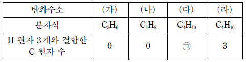 표는 서로 다른 포화 탄화수소 (가)~(라)에 대한 자료이다.