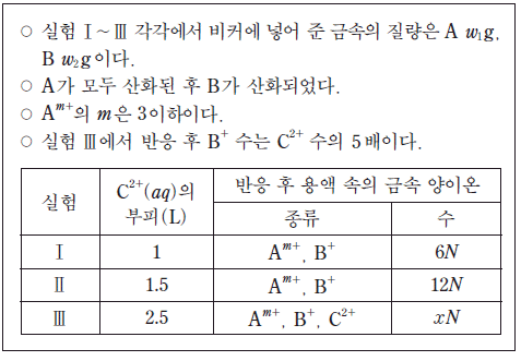 x/m는? (단, 음이온은 반응하지 않는다.) [3점]
