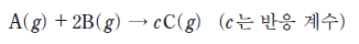 다음은 기체 A와 B가 반응하는 화학 반응식이다.