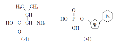그림은 생명 현상과 관련 있는 물질 (가)와 (나)의 구조를 나타낸 것이다.