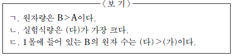 이에 대한 설명으로 옳은 것만을 <보기>에서 있는 대로 고른 것은? (단, A~D는 임의의 원소 기호이다.) [3점]